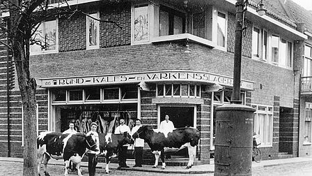 Paul Reus, deelnemer aan de gemeentelijke fotowedstrijd in 2025, vond een archieffoto uit 1925. Op die foto staat slagerij Wijnands in de Dorpsstraat in De Bilt. Vijf mannen, waarschijnlijk medewerkers van de slager, poseren trots in hun witte jassen. Voor hen staan drie koeien wiens laatste uur waarschijnlijk heeft geslagen. Achter hen hangen de stukken vlees zichtbaar in de vitrine.